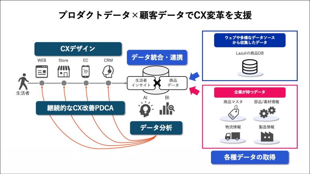 Lazuliは、2020年7月に設立以来、高度なAI技術を駆使し、クラウドサービスとして、DXやEC、マーケティングの担当者など、ビジネスに関わる誰もが世界中の商品情報を利用できるSaaS「Lazuli PDP」の開発・提供をはじめとし、企業のデータ活用支援を進めており、国内大手企業への導入が進んでいます。