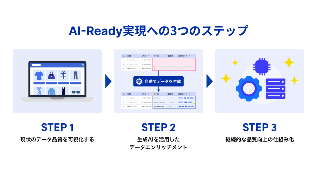 AI Readyな商品情報は、一度構築すれば終わりではありません。市場の変化に応じて継続的にアップデートし、品質を向上させ続ける仕組みが必要です。