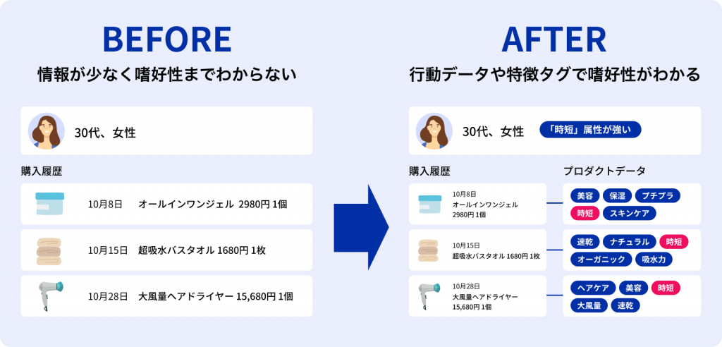 従来の顧客データは、購買履歴や基本的な属性情報に限定されがちでしたが、Lazuli PDPを利用することで、より深いレベルの顧客理解が可能になります。